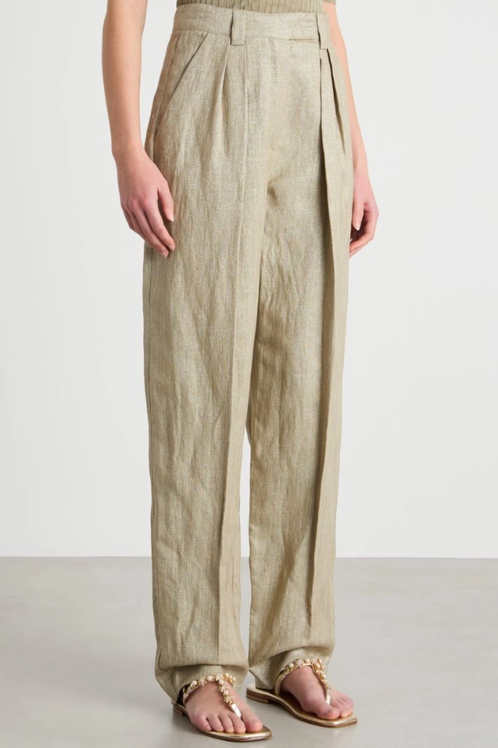 Straight-fit trousers crafted in a linen and viscose slub twill, featuring belt loops, French pockets on the front and welt pockets on the back. Concealed hook and zip fastening.