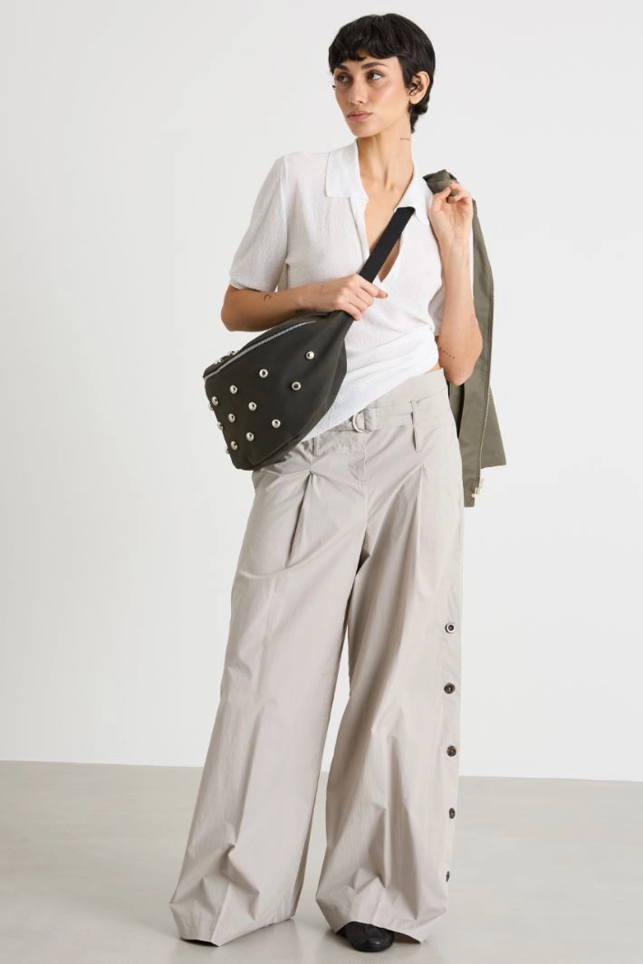 Split-side poplin trousers