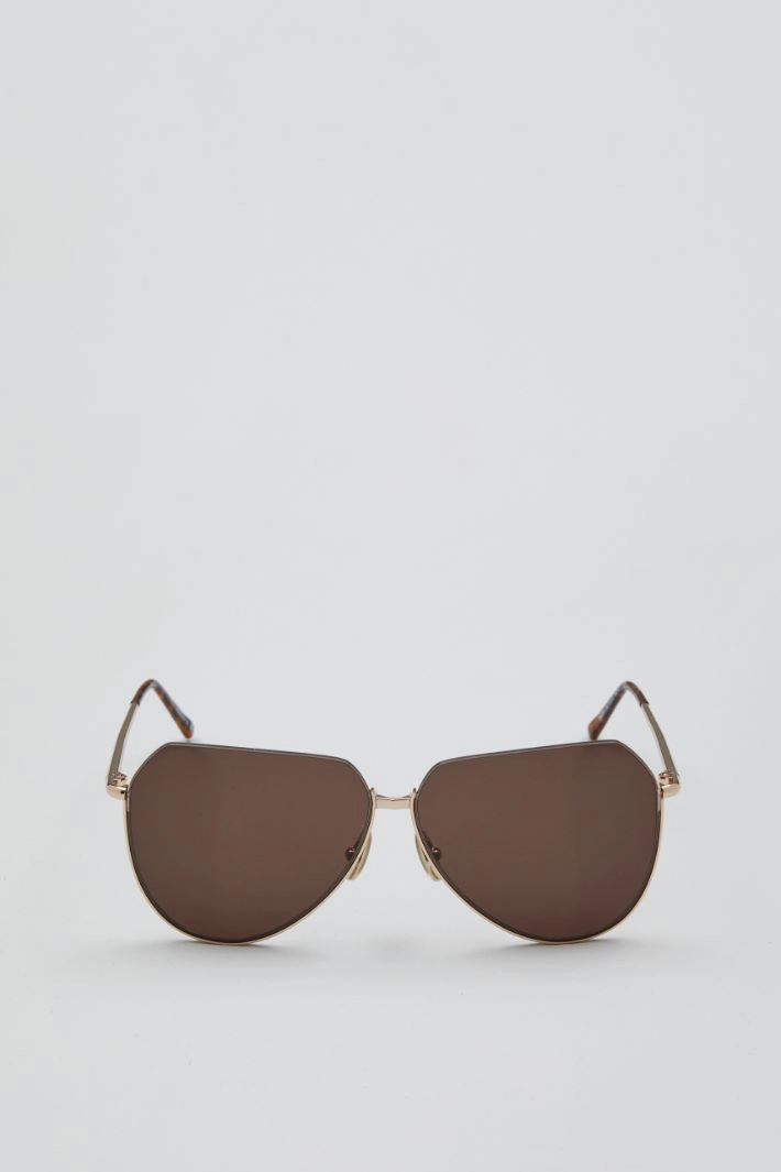 Oversized metal sunglasses with a thin frame, rounded lenses and resin tips.